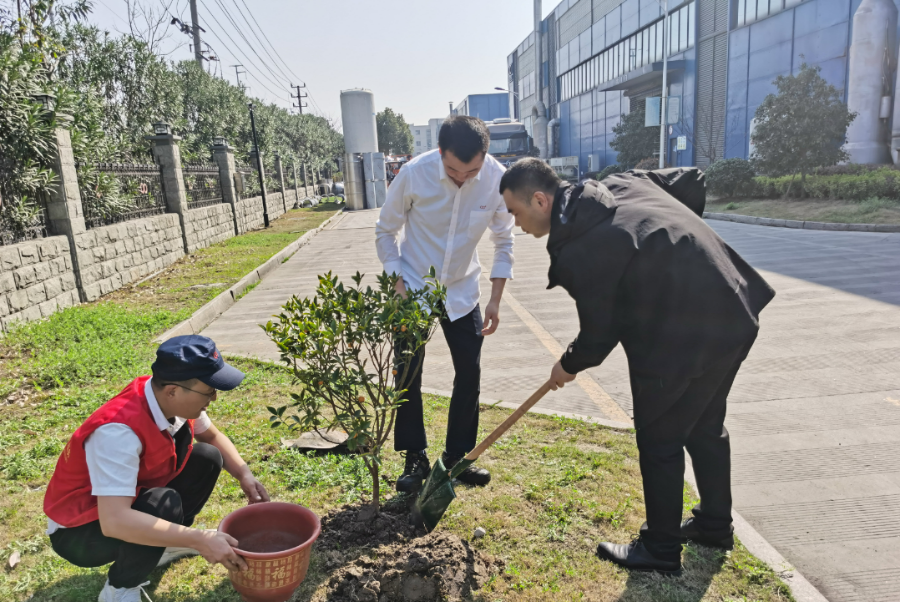 據(jù)悉,江蘇雙環(huán)老廠區(qū)5號廠房南面,多年來一直是荒地,影響廠容廠貌。為了改善和美化園區(qū)環(huán)境,結(jié)合植樹節(jié)契機,公司綜合管理部組織策劃植樹活動,購置了幾百株羅漢松和桂花樹幼苗,用來裝點園區(qū)。大家挖坑、插苗、填土、踩實、澆水、培土加固,經(jīng)過一個小時許的緊張勞動,原來的荒地霎時豎起了一排排整齊的嫩綠樹苗。望著經(jīng)過自己的雙手變得美麗起來的小樹林,頓感欣慰和喜悅,每個人臉上都笑開了花。