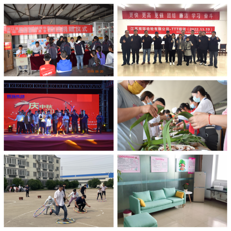 自創(chuàng)立以來(lái),江蘇雙環(huán)秉承母公司雙環(huán)傳動(dòng)“好一點(diǎn),好很多”的優(yōu)秀文化基因,始終關(guān)注職工發(fā)展,努力為職工提供物質(zhì)和精神雙幸福,積極踐行“目標(biāo)文化” “責(zé)任文化” “改善文化” “奮斗文化” “家文化”五大企業(yè)文化,將“為職工搭建發(fā)展平臺(tái)”作為江蘇雙環(huán)的奮斗使命,致力于為每位職工提供多元化的職業(yè)發(fā)展路徑,著力塑造健康和諧的工作氛圍,不斷豐富廣大職工的精神文化生活,努力健全職工健康服務(wù)體系。