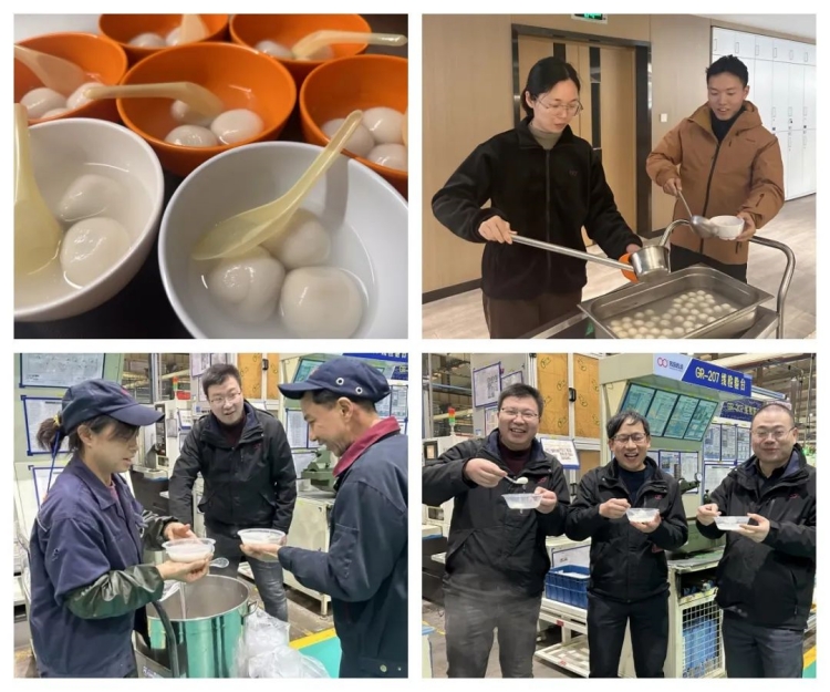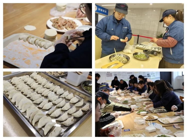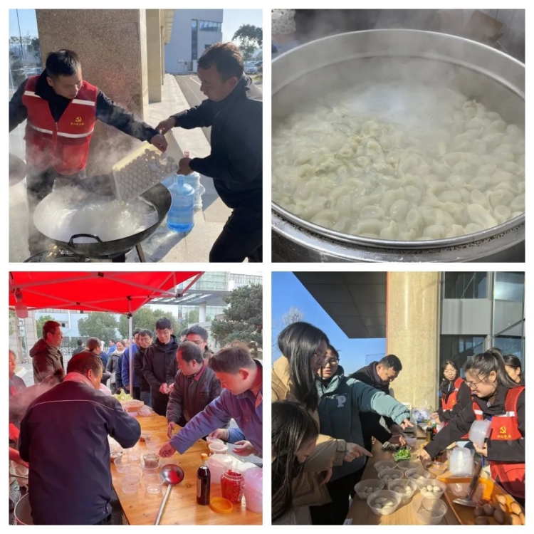 “冬至不端餃子碗,凍掉耳朵沒人管?!痹陔p環(huán)本部和江蘇雙環(huán),又是一番別樣的熱鬧景象?!伴_煮!”一聲令下,一個個白白胖胖的餃子紛紛入鍋,不一會兒就香飄四溢,伴隨著熱氣騰騰的餃子出鍋,整個園區(qū)沉浸在餃香四溢的節(jié)日氛圍中。大家圍坐在一起,吃餃子、嘮家常,現(xiàn)場氛圍十分和諧。為了照顧異鄉(xiāng)人的口味,雙環(huán)本部還為大家貼心地準(zhǔn)備了美味的咸甜湯圓、茶葉蛋、五花肉燉粉。