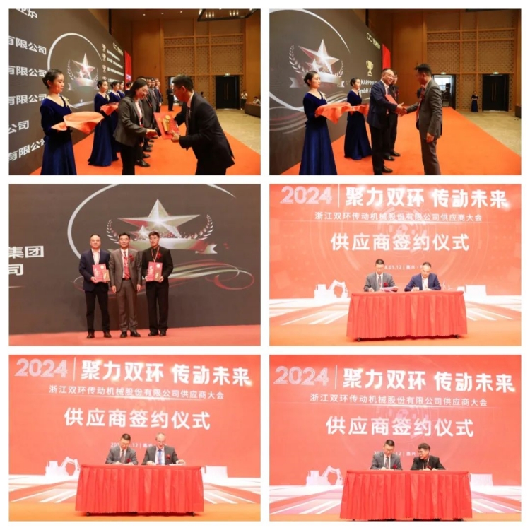 為感謝供應(yīng)商伙伴對(duì)雙環(huán)發(fā)展的大力支持與積極貢獻(xiàn),大會(huì)對(duì)優(yōu)秀供應(yīng)商進(jìn)行表彰,先后頒發(fā)2024年度“最佳質(zhì)量獎(jiǎng)”(4家)、“最佳合作獎(jiǎng)”(14家)、“優(yōu)秀供應(yīng)商獎(jiǎng)”(10家)、“戰(zhàn)略伙伴獎(jiǎng)”(2家)?,F(xiàn)場(chǎng)氣氛熱烈,掌聲不斷。頒獎(jiǎng)儀式過后,雙環(huán)傳動(dòng)還與供應(yīng)商(3家)舉行了隆重的簽約儀式。
