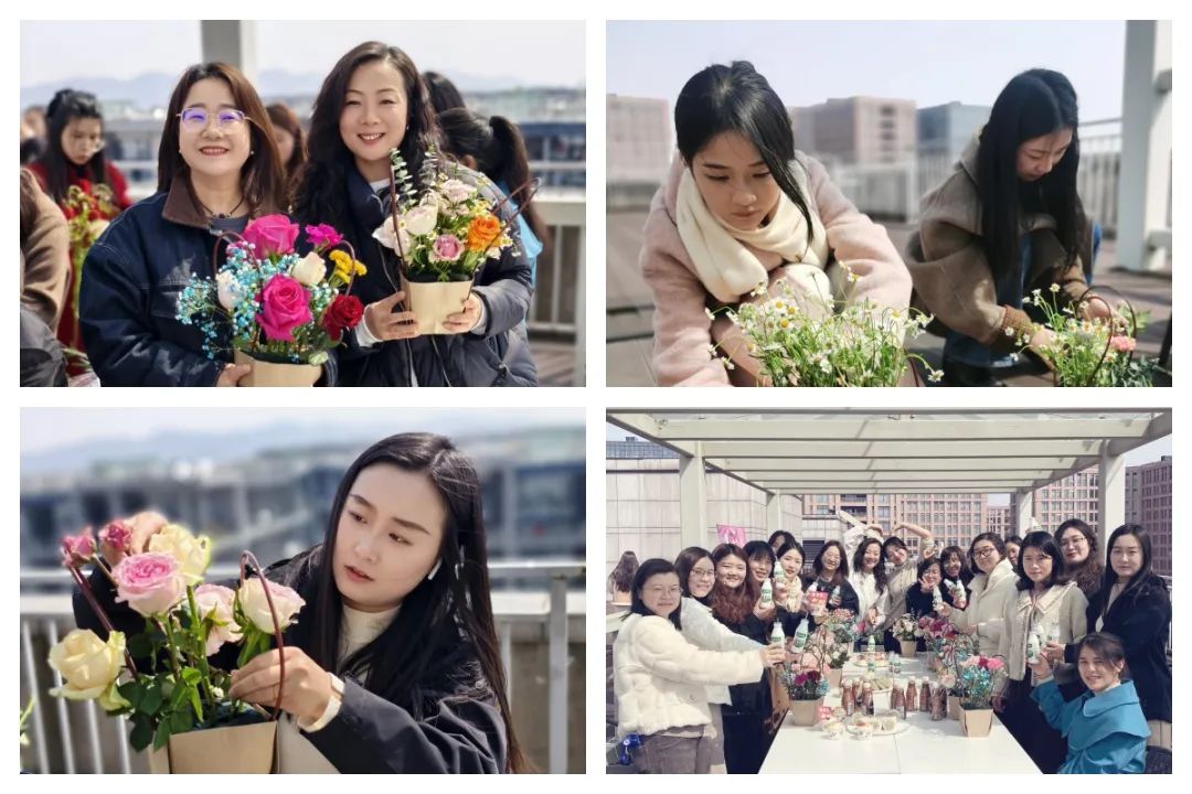 3月8日,在杭州管理總部頂樓,一場(chǎng)熱鬧的插花主題活動(dòng)在燦爛的春光中精彩上演。一到活動(dòng)現(xiàn)場(chǎng),女性員工們便感受到撲鼻而來(lái)的花香,一簇簇鮮花種類(lèi)不一,色彩多樣,吐露著春天的芬芳。配合著頭頂上游蕩春風(fēng)中的藍(lán)天白云,描繪出一幅無(wú)限美好的畫(huà)卷。