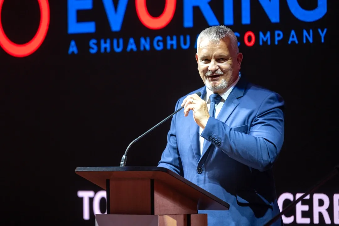 在致辭中,吳長鴻代表雙環(huán)傳動向匈牙利政府領(lǐng)導(dǎo)、各位嘉賓的到來表示熱烈歡迎與誠摯感謝。他表示,轉(zhuǎn)眼間,我們就能見證工廠建設(shè)的完成,雙環(huán)匈牙利工廠建設(shè)如此高效地推進,離不開大家的大力支持與共同努力。在此,非常感謝匈牙利中央政府、當?shù)刂荨⑹袨楣S的建設(shè)所給予的大力支持,感謝項目建設(shè)方Merkbau團隊,項目管理方Greenfield團隊,當?shù)睾献骰锇橐约半p環(huán)EVORING團隊等給予的關(guān)心支持與付出的辛勤努力。期待項目團隊再接再厲,同心協(xié)力,推動工廠早日建成投產(chǎn),為更好地服務(wù)全球客戶、穩(wěn)步實現(xiàn)公司國際化發(fā)展、推動屬地社會與經(jīng)濟發(fā)展做出貢獻。