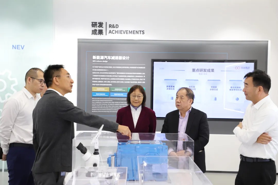 在雙環(huán)研究院展廳,吳長鴻向林忠欽院士詳細介紹了公司的發(fā)展歷程、業(yè)務布局、技術創(chuàng)新成果、智能制造以及未來戰(zhàn)略規(guī)劃等。他表示,雙環(huán)傳動以“改變齒輪行業(yè)自給自足的格局,成為全球精密傳動領導者”為企業(yè)愿景,一直堅持以技術為立身之本,在技術研發(fā)、產品創(chuàng)新、數(shù)字化轉型上取得了積極成果,致力于為全球機械傳動系統(tǒng)提供高速低噪、安全低碳的產品。林忠欽院士仔細察看著每一樣展品,對雙環(huán)傳動在技術研發(fā)方面的投入和取得的成果表示肯定。在雙環(huán)研究院實驗室,林忠欽院士饒有興趣地觀看了各種先進的實驗設備和測試過程,對雙環(huán)傳動在質量控制和技術創(chuàng)新方面的嚴謹態(tài)度表示贊賞。